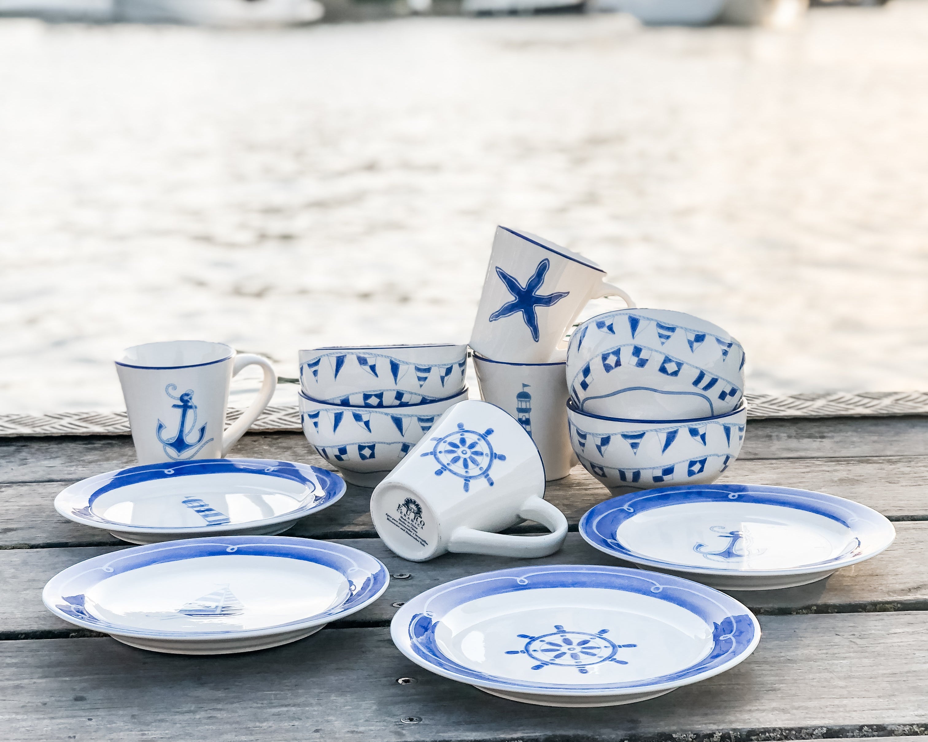 This nautical-inspired collection features a unique design on each piece. The bold, contrasting blue and white decoration is reminiscent of beautiful blue oceans and crisp white sand beaches.
