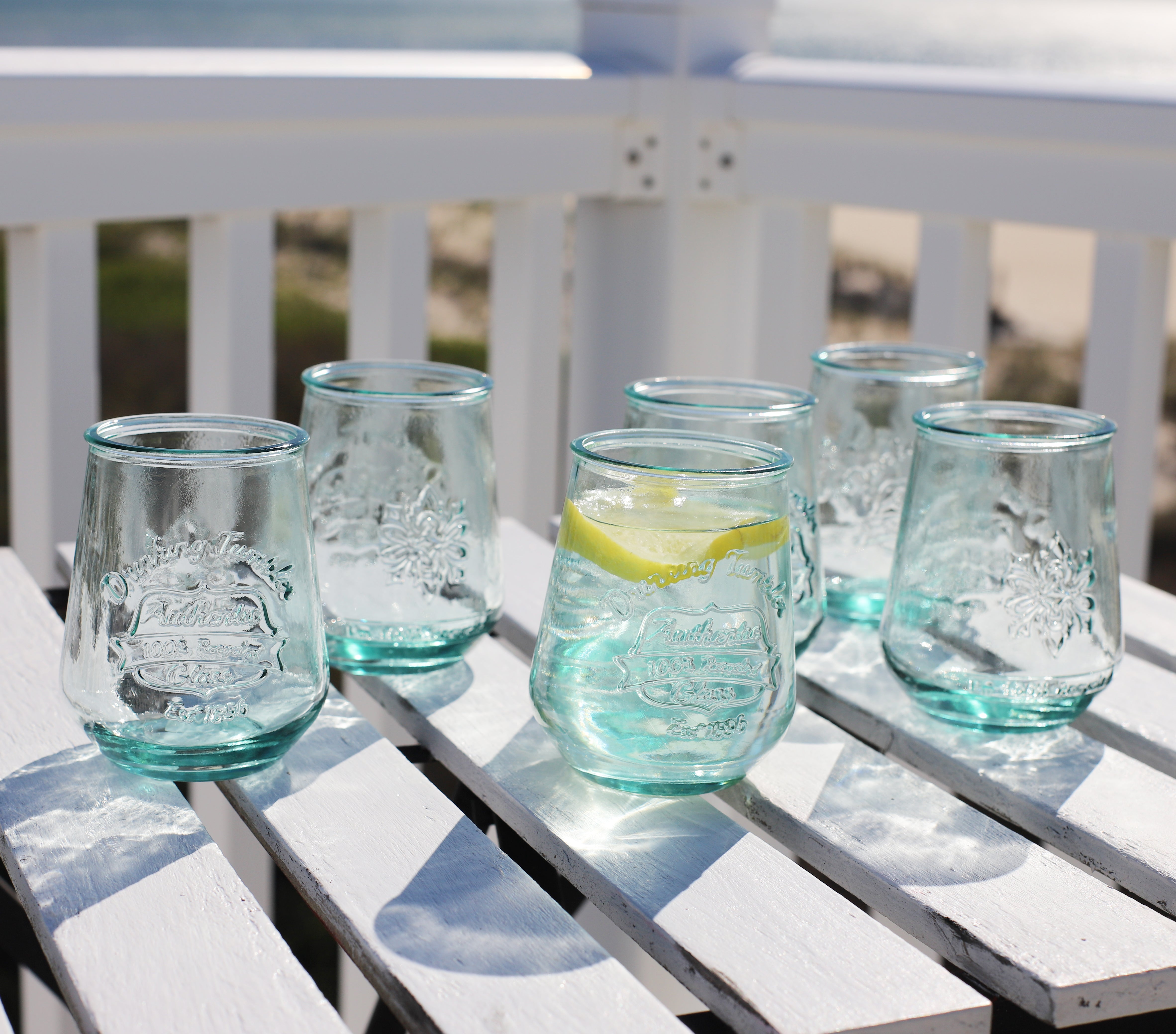 The feel of organic elegance with their shape and natural green color, and the ideal size for so many of your favorite drinks will make these the most popular glass in your household. Handmade in Spain and Crafted of 100% embossed and sealed recycled glass.