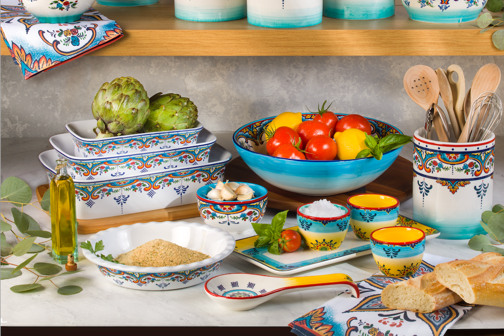 The collection features a wide selection of dinnerware, serveware, bakeware, accessories, and table linens—making it a complete set for everyday dining and entertaining.